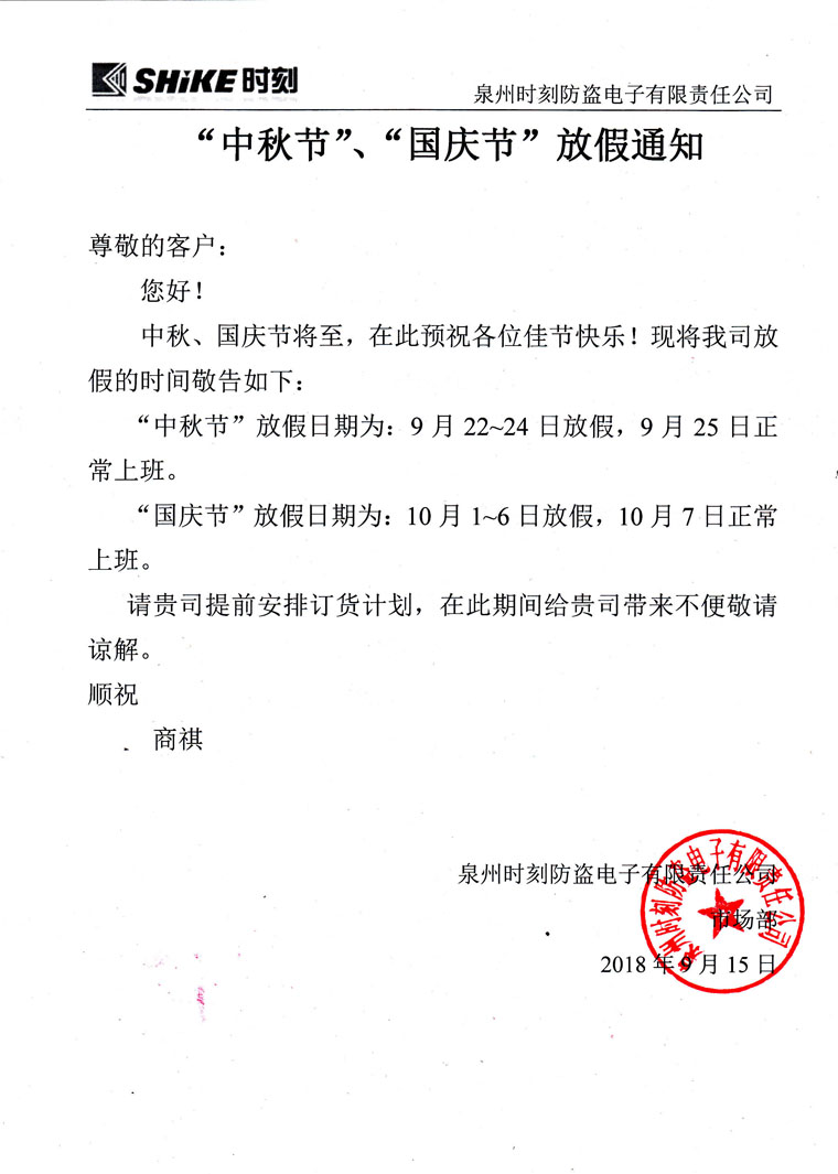 中秋國慶放假通知