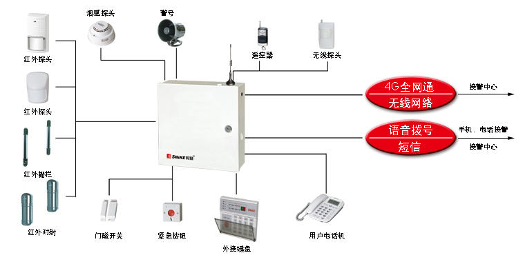 •內(nèi)置4G手機(jī)模塊,可實現(xiàn)由手機(jī)模塊撥號、4G無線網(wǎng)絡(luò)報警及發(fā)送中文短信息報警;